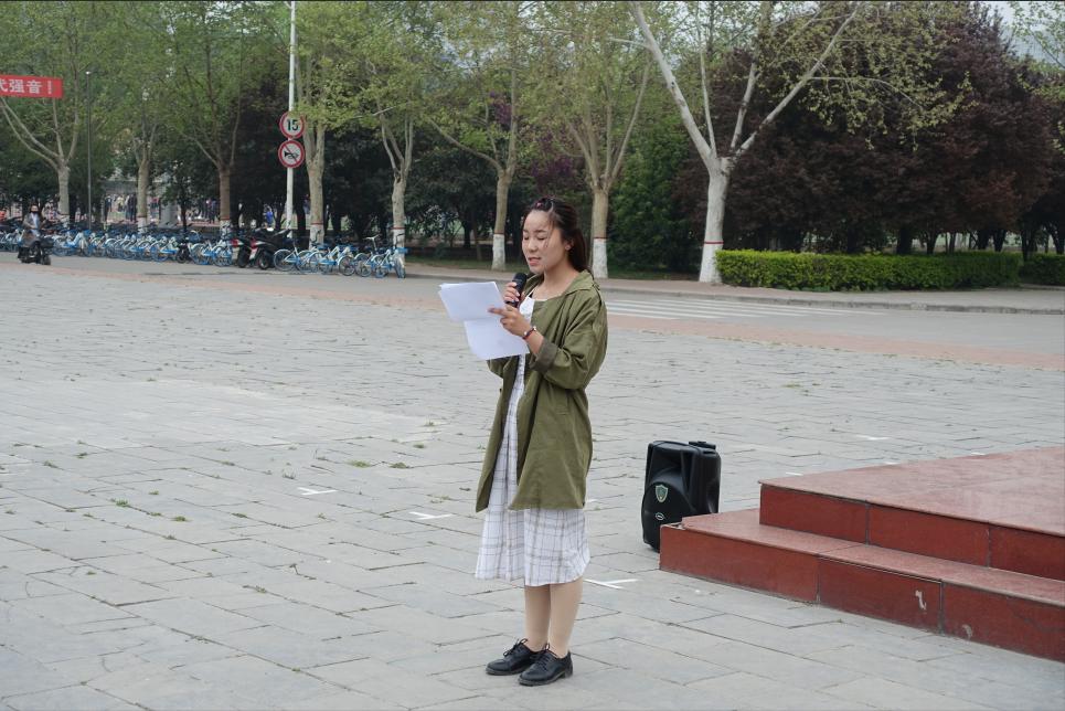 升旗仪式于6:50准时开始,国旗护卫队的旗手们,以饱满的热情昂首挺胸,护卫着五星红旗来到旗杆下。当雄壮有力的《义勇军进行曲》响彻整个校园时,学生集体行注目礼,全场弥漫着庄严肃穆的气息。鲜艳的五星红旗冉冉升起,点燃了在场所有人的爱国情怀。升旗完毕后,由18级学生代表王利莎同学和国旗护卫队代表介梦娟同学依次上台进行国旗下讲话。王利莎同学以“弘扬爱国精神,重拾传统文化”为主题,以刚刚过去的清明节为契机号召同学们应重视传统节日,了解民族文化,用真诚的心来缅怀革命烈士。介梦娟同学是以“爱国,是一种责任”为主题的发言阐述了作为一个优秀的大学生应珍惜时间,刻苦学习,真正承担起建设祖国的责任。