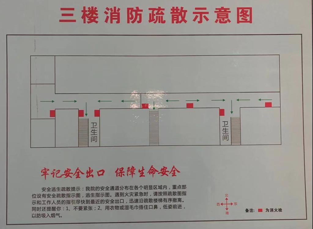 二、在实验室各楼层入口处悬挂消防疏散示意图和消防安全三提示宣传画,在各消防栓位置张贴消防栓使用说明示意图,在各个实验室大门上张贴实验室安全信息卡,实验室楼层大厅设立安全教育宣传栏(图1-3)。